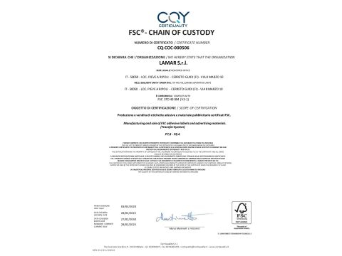 Aver ottenuto questa importante certificazione, permette a Lamar di poter imprimere il prestigioso logo della certificazione forestale FSC® sulle etichette dei propri Clienti.